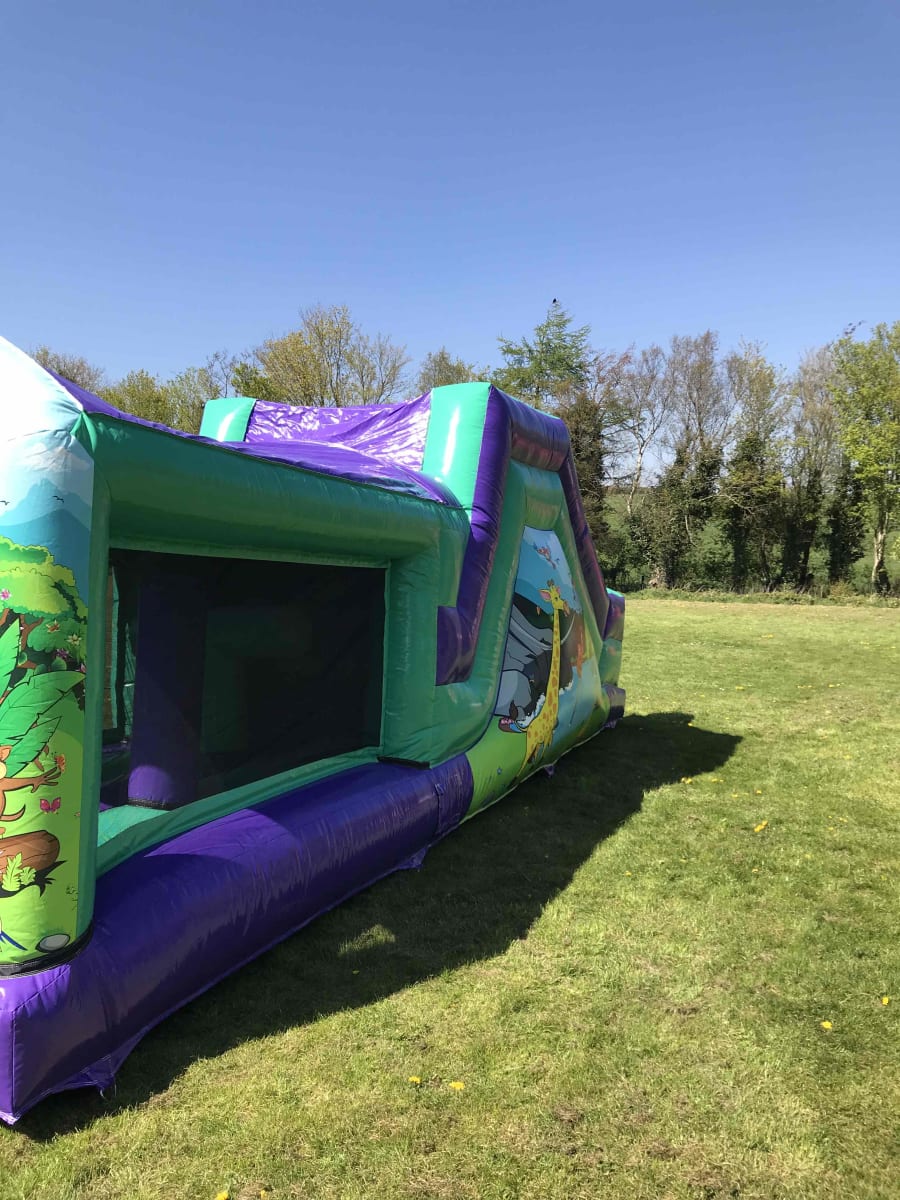 AT approx. 30ft long x 12ft wide this bright and eye-catching jungle themed obstacle course will give hours of fun for the participants, with up and over obstacles, dead men and slide at the end its a must have addition to any event.